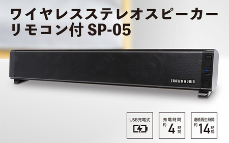 ワイヤレスステレオスピーカー リモコン付 SP-05 - コンパクトながらもパワフルなサウンドを実現!