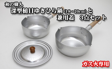 No.071 和の職人深型槌目ゆきひら鍋(18・20cm)と兼用蓋3点セットガス火専用