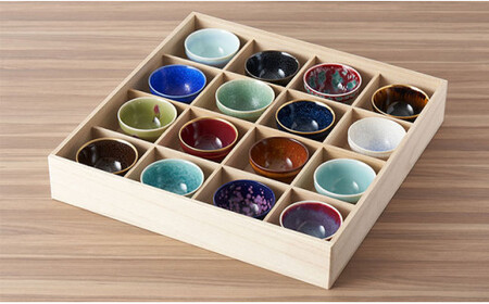 宝石のような輝き 釉の妙技 盃16選 桐箱入 深海三龍堂 有田焼 真右エ門窯 ぐい呑 盃 日本酒 sake 熱燗 冷酒 A200-30
