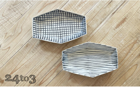 たたら染付六角皿 2枚セット 24to3 西富陶磁器 有田焼 化粧箱入り A30-269