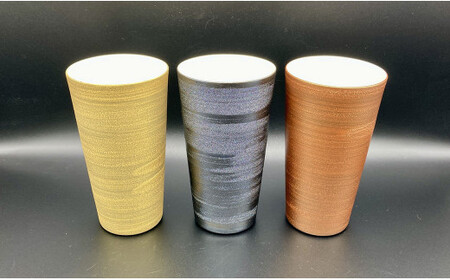有田焼 伝作窯 甲胄タンブラー 金銀銅3個セット A40-178