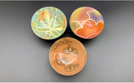 有田焼 伝作窯 黒助茶碗 松竹梅 3個セット A55-59