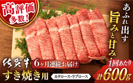 以下のお品を全6回お届けします。 佐賀牛 すき焼き用 600g 部位:リブロース・カタロース 【消費期限】 冷凍30日間