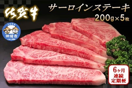 佐賀牛サーロインステーキ 200g×5枚【6カ月連続定期便】 (H065136)
