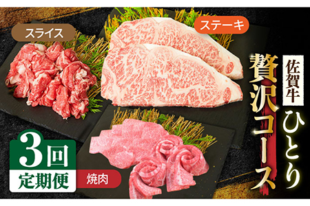 【全3回定期便】1ヶ月に1度の佐賀牛ひとり贅沢コース ステーキ/焼肉/スライス 牛肉 希少 赤身 カルビ ヒレ サーロイン モモ 切り落とし[FAY065]