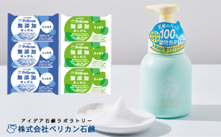 ・無添加 泡ボディソープ:500mL ・ペリカン無添加せっけん しっとり:100g×3 ・ペリカン無添加せっけん さっぱり:100g×3
