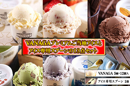 VANAGAプレミアムご当地アイス12個とアイス専用スプーン(ゴールド1本)の13点セット 島根県雲南市/やまざと.com [AICN001]
