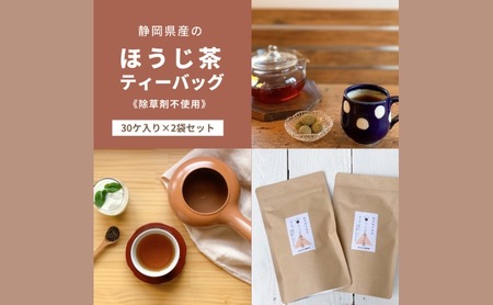 静岡県産のほうじ茶ティーバッグ【栽培期間中除草剤不使用】(30ヶ入り×2袋セット)