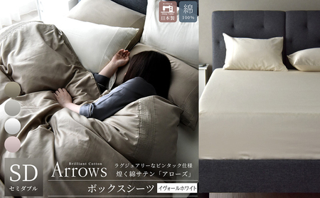 日本製 ボックスシーツ セミダブルサイズ 綿サテン アローズ 「イヴォールホワイト」 寝具