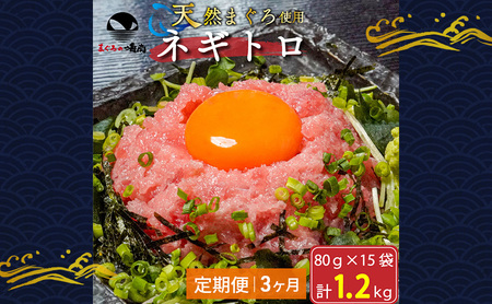 【定期便 3回】※月1回、3ヶ月連続でお届けします。 (1回分内容量) 〈ネギトロ〉原材料:キハダ鮪、びんちょう鮪、食用植物油脂/pH調整剤、酸化防止剤(VC) 内容量:80g×15袋 計1.2kg 製造地:静岡県浜松市