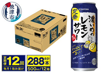 (定期便)濃いめのレモンサワー500ml×24本 (1箱)×12回 【関連キーワード】 定期便 レモンサワー サッポロ チューハイ 焼津 【定期便 12回】 濃いめのレモンサワー 500ml×24缶(1箱)