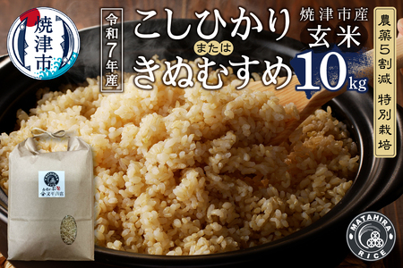 玄米:5kg×2袋 【関連キーワード】 令和7年産 米 玄米 コシヒカリ きぬむすめ 10kg(5kg×2袋) 農薬5割減 特別栽培 安心 安全 こだわり 減農薬 ごはん 焼津