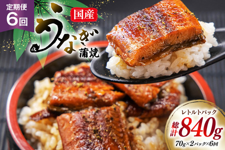 うなぎ 国産 訳あり 常温 蒲焼 定期便 レトルト 70g 2パック 6回 総計840g タレ 山椒 付き [マルニうなぎ加工 静岡県 吉田町 22424473]