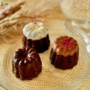 ・米粉のカヌレプレーン ・米粉のカヌレショコラ ・米粉のカヌレ紅茶 各1個 ・米粉のカヌレ生ティラミス3個