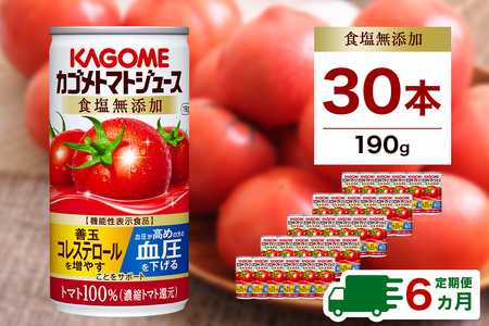 【定期便6ヵ月】 カゴメ トマトジュース 食塩無添加 190g缶×30本 1ケース 毎月届く 6ヵ月 6回コース【 栃木県 那須塩原市 】 ns001-018