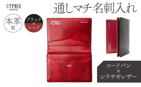 キプリス本革製コードバンxシラサギレザー通しマチ名刺入れ:1点 カラー:ブラックxネイビー