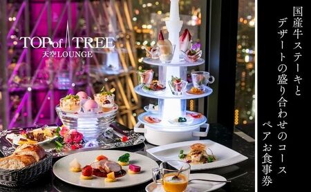天空LOUNGE TOP of TREE「記念日におすすめ乾杯ドリンク付き 国産牛ステーキコース」 ペア ランチ 食事券