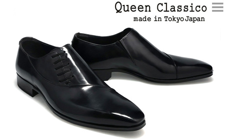 クインクラシコ 革靴 25005S〈ブラック〉 (サイズ:24.5cm) 紳士靴 幅広 甲高 ビジネスシューズ サイドレース エラスティック スリッポン 牛革