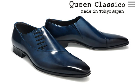クインクラシコ 革靴 25005S〈ネイビー〉 (サイズ:26.5cm) 紳士靴 幅広 甲高 ビジネスシューズ サイドレース エラスティック スリッポン 牛革
