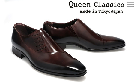 クインクラシコ 革靴 25005S〈ダークブラウン〉 (サイズ:27.5cm) 紳士靴 幅広 甲高 ビジネスシューズ サイドレース エラスティック スリッポン 牛革