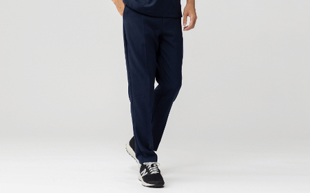 「メンズ スクラブパンツ リンクル」1着 (表地:ポリエステル100%) ※素材特性:ストレッチ、イージーケア、制電加工、シワ加工 ※カラー:ネイビー ※サイズ:S
