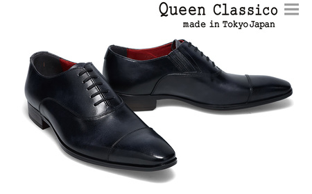 クインクラシコ 革靴 10001 (カラー:ブラック、サイズ:27.0cm) ビジネスシューズ 本革 ストレートチップ 幅広 甲高 キャップトゥ エラスティック スリッポン 牛革 フォーマル