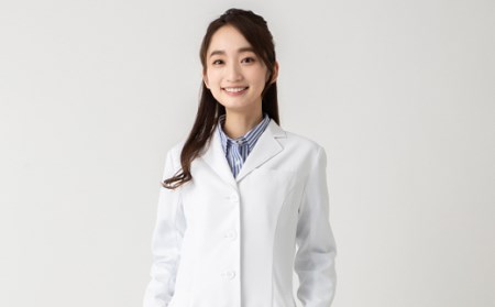 レディース白衣「ネオ・スタンダード ドクターコート」1着 (表地:ポリエステル100%、裏地:ポリエステル100%) ※サイズ:38サイズ ※【左袖】または【左胸】にネーム刺繍入り 2段24文字(1段あたり12文字まで)