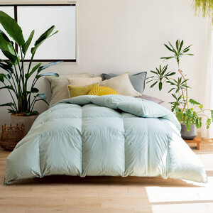 ■色:サンドグリーン ■サイズ:【シングルロング】 約150×210cm・1.0kg ■素材: 側地…ポリエステル85(50%以上はリサイクルポリエステル)・綿15% 中身…ダウン85・フェザー15%(リサイクルダウン) ■ループ7ヵ所 ■日本製