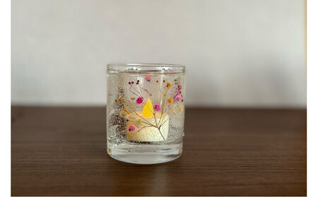 ロスフラワーで作る、かすみ草のキャンドルホルダー 【ピンク&イエロー】