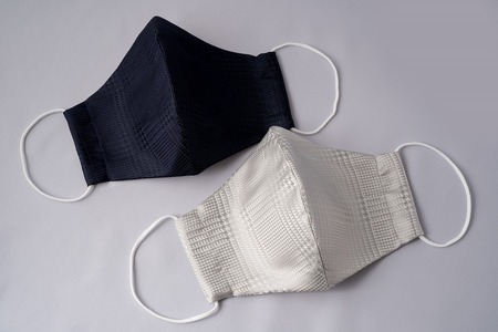 【受注生産】匠の技術で織り上げる美しいシルクマスク(抗菌)2枚セット(グレンチェック ネイビー&シルバー)
