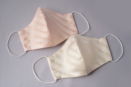 【受注生産】匠の技術で織り上げる美しいシルクマスク(抗菌)2枚セット(マルチストライプ サーモンピンク&アイボリー)