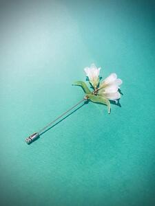 風鈴草ブートニエール1輪 わかくさ(グリーン系)1個 【サイズ】 タテ12cm、ヨコ4cm 素材:プラスチック(花・葉部分)、金属(軸部分)