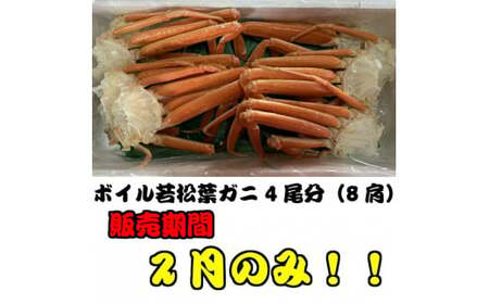 【松葉ガニ/11月より寄付額改定】【魚倉】ボイル若松葉ガニ 4尾分8肩(足1~2本なし含む)