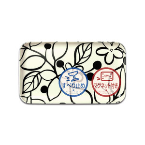 サイズ 幅21.5×奥行き12.5×高さ1.7cm 重さ130g 内寸 幅19×奥行き10.5cm 【原材料名】 不飽和ポリエステル樹脂 ウレタン塗装 ラバーマグネット 【お取り扱いに関する注意事項】 ・金属面にのみ貼り付けることができます。樹脂コーティングなど磁力が効きにくい場所は避けてください。 ・曲面は落下の恐れがありますので貼り付けないでください。 ・テレビやパソコン、フロッピーディスクなど磁力の影響を受ける場所に置かないでください。 ・この商品は、家庭用の食洗機に対応しておりますが、業務用の食洗機には対応しておりません。詳しくは、貼付の品質シールをお読みください。 ・布地の持つ特性上、絵柄に若干の歪みやシワが生じていることがございますが、使用上問題ございません。予めご了承ください。 ・布地を一枚一枚成型していますので、お届けする商品によって絵柄の位置や風合いが多少異なることがあります。 ・商品の色は、お使いのブラウザやモニターによって実際の色と若干異なる場合がございます。ご了承ください。 ※商品画像では一部イメージとしてブラウンカラーのトレーを使用しておりますが、現在ブラウンカラーの取り扱いはございません。予めご了承ください。