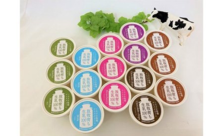 放牧育ちの牛たちの生乳をふんだんに使用した牧場手作りアイスクリーム16個セット
