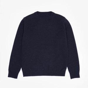 SHION ミドルゲージ プレーンセーター(品番:DBAA501M) 1着(カラー:ダークブルー) <サイズ> L【着丈 65cm / 身幅 52cm / 肩幅 40cm / 袖丈 63cm / 裾幅 44cm】 <ターゲットサイズ> 胸囲:L(96-104) <素材/取り扱い> ウール100%/ドライクリーニング