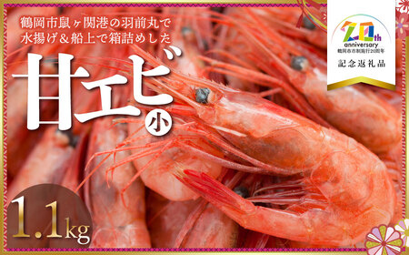 鶴岡市鼠ヶ関港水揚げ 船上箱詰め甘エビ(小) 1.1kg 【市制施行20周年記念返礼品】 羽前丸水産