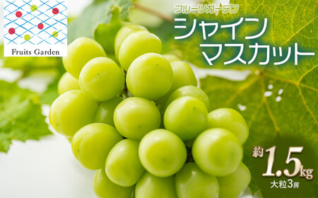 シャインマスカット 約1.5kg 大粒3房 【提供事業者】 フルーツガーデン 【産地名】山形県鶴岡市羽黒町 【産年】令和7年産 【賞味期限】 約3日 生ものです。到着次第、お早めにお召し上がりください。