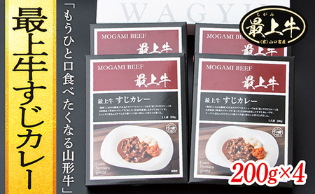 レトルトパウチ 200g×4パック 【原材料】 食肉等(牛すじ肉、牛脂)(山形県産、最上牛)、野菜(玉ねぎ、にんじん)、小麦粉、カレー粉、砂糖、トマトピューレー、りんごピューレー、フォンドボー、ミックスフルーツチャツネ、玉ねぎエキス、ビーフエキス、食用調合油、香辛料、ウスターソース、チキンコンソメ、オイスターソース、食塩、おろしにんにく、おろししょうが/調味料(アミノ酸等)、カラメル色素、酸味料、香辛料抽出物、(一部に乳成分・小麦・牛肉・大豆・鶏肉・バナナ・りんご・ゼラチンを含む)