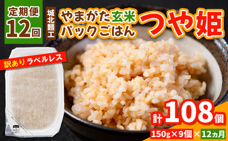 【定期便12回】やまがた玄米パックごはん 150g×9個 (つや姫) ラベルレス 訳あり 山形 パックライス 備蓄 保存 FY25-163