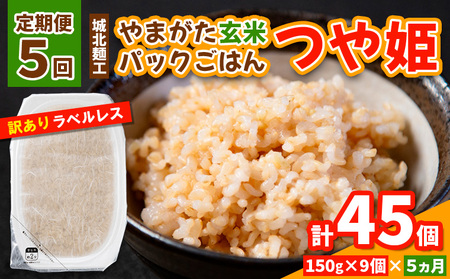 【定期便5回】やまがた玄米パックごはん 150g×9個 (つや姫) ラベルレス 訳あり 山形 パックライス 備蓄 保存 FY25-165