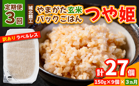 【定期便3回】やまがた玄米パックごはん 150g×9個 (つや姫) ラベルレス 訳あり 山形 パックライス 備蓄 保存 FY25-166