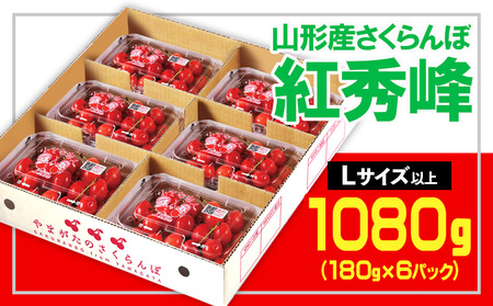 ☆山形さくらんぼ 紅秀峰☆Lサイズ以上 1080kg(180g×6) 【令和8年産先行予約】 FS25-555