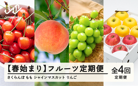 【先行予約】【春始まり】フルーツ定期便 全4回 2026年産 令和8年産 さくらんぼ 佐藤錦 白桃 ぶどう シャインマスカット りんご サンふじ シナノゴールド 果物 送料無料 ns-ft4xx-sp ※沖縄及び離島への配送不可