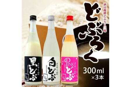 (1)黒どぶ 300ml×1本 原材料名:米(山形県酒造好適米)、米麹(国産) アルコール度:12% (2)白どぶ 300ml×1本 原材料名:米(山形県酒造好適米)、米麹(国産) アルコール度:10% (3)ピンどぶ 300ml×1本 原材料名:米(山形県酒造好適米)、米麹(国産) アルコール度:7%