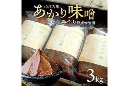 名称:米みそ 原材料名:大豆(産)(遺伝子組み換えでない)、米(産)、食塩、麹菌 内容量:1袋あたり1kg お届け袋数 (キロ数):3袋 (計3kg)