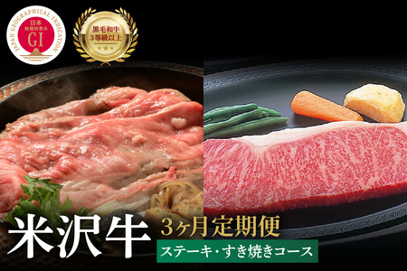 【3ヶ月定期便】米沢牛 ステーキ・すき焼きコース【冷蔵】
