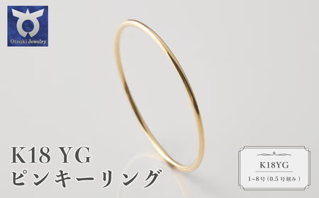 K18YG ピンキーリング 1点 【材質】 ・K18YG 【サイズ】 ・1〜8号(0.5号刻み) ・リングの幅:約0.8mm 【その他】 ・弊社の品質保証書、専用ケース付き ・ラッピング対応可能