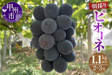 ピオーネ 1.1kg以上(2~3房) 【申込期日】 2026年9月中旬頃まで 【消費期限】 到着次第、お早めにお召し上がりください。 【注意事項】 ※上記注意事項を必ずご確認ください。 ※画像はイメージです。 ※収穫時期により発送時期が前後するため、前もって発送日を確定しにくい状況や、寄附者様に良い状態で果物を楽しんでいただきたい思いから一定のルールを設けていることを何卒ご理解いただければ幸いです。 ※基本的には2房入りですが、グラムに合わせて箱詰めするため、場合によっては3房入りとなることもあります。大きさの指定はできかねますので予めご了承ください。 ※冷蔵便でお届けするため、お手元に届きましたらすぐに冷蔵庫へ入れてください。 ■関連キーワード:ピオーネ 2026年 先行予約 クール便 2~3房 1.1kg以上 果物 期間限定 9月 10月 発送 朝採り 農家直送 人気 厳選 大粒 フルーツ ぶどう 葡萄 果実 くだもの あめみやぶどう園 冷蔵 山梨県 甲州市