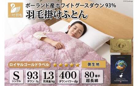 羽毛布団 1枚 〇サイズ:シングル 150×210cm 〇柄/色:ビーチェ/ピンク 〇側生地:ポリエステル85% 綿15% SEK抗菌防臭加工 〇縫製:立体キルト(4×5マス) 〇詰め物:ブルガリア産ホワイトダックダウン93%・スモールフェザー7% 〇羽毛充填量:1.3kg 〇ダウンパワー:400dp以上 〇ラベル:ロイヤルゴールドラベル ※ソフトケース1枚付属 ※カバーを止めるループは8箇所 ■関連キーワード:羽毛布団 掛け布団 シングル ブルガリア産 ホワイトダックダウン93% 1.3kg 400dp 5つ星 ロイヤルゴールドラベル 本掛け 寝具 布団 国産 日本製 冬用 ダウンケット 羽毛 掛布団 ふとん